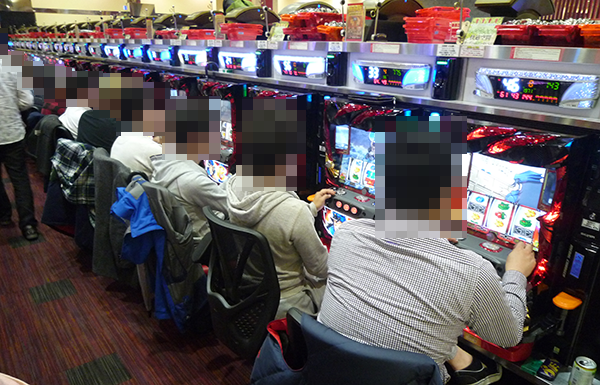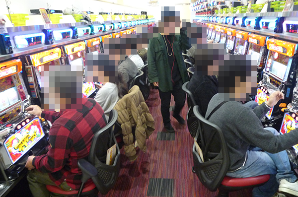開店直後の1000円/47枚パチスロの様子をうかがうと、スペックを問わずに多くの機種が満席。