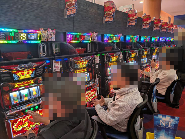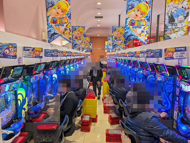 店内には、多くのプレイヤーが集まっており、パチンコとパチスロの両方が盛り上がりをみせていた。
