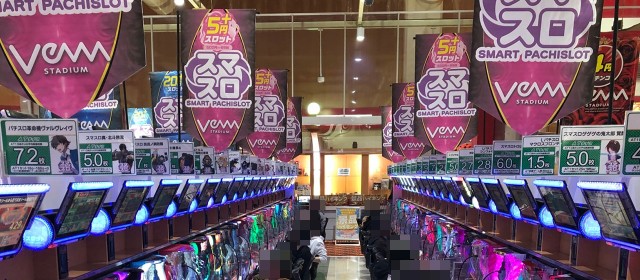 まずは[1000円/46枚]スロ、前回で台上カウンターに5桁の差枚数が映し出されている台が見受けられたスマスロコーナーに向かった。