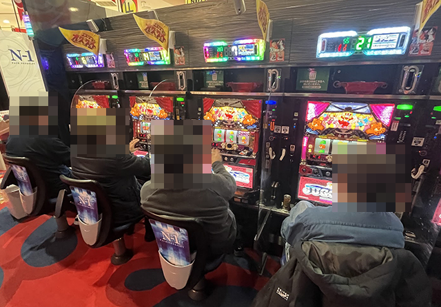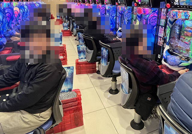 持ち玉を使い、うれしそうに遊技をおこなっている姿があった。