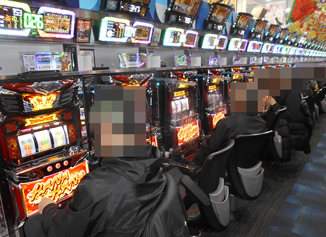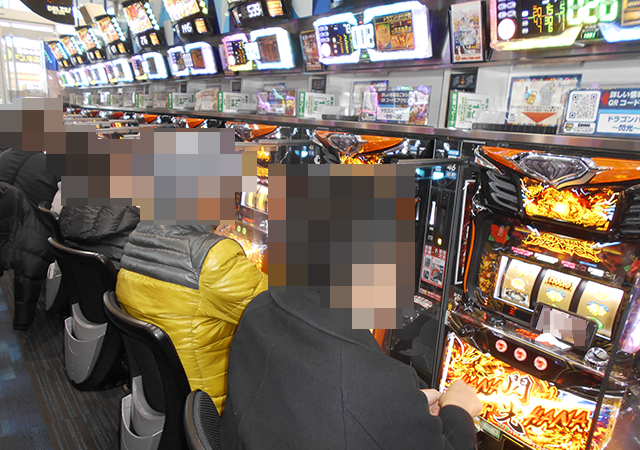 ホール内をみると、新台から定番のシリーズ機まで、幅広い機種が楽しまれていた。