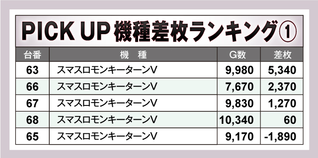 優秀台、ピックアップ機種ともに好調で、終わってみればトップ30台のうち21台が+2,000枚オーバー。さらにそのうちの半数近くの10台が+4,000枚オーバー。さらにピックアップ機種は2機種とも大きく勝ち越し&差枚プラスだった。前回以上の盛り上がりを見せてくれたことは間違いなさそうだ。