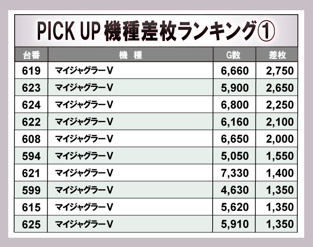 上表の優秀機種からは、いずれも大きな熱気が放たれていたようだ。特に『マイジャグラーⅤ』はまとまった出玉を10台以上獲得しており、活気も伴った状況も相まって盛り上がりの中心になっていたと言えるだろう。
