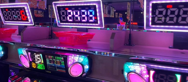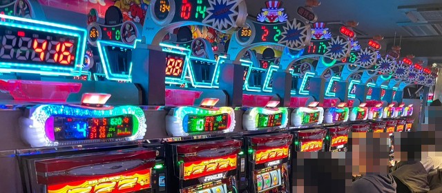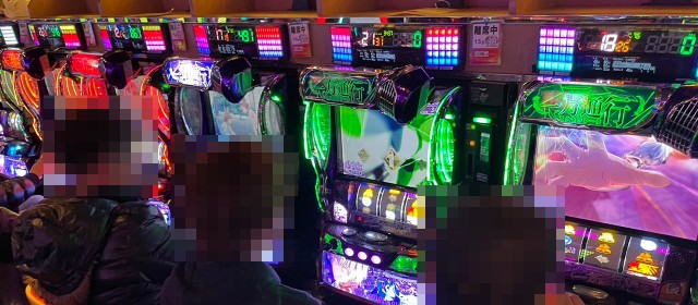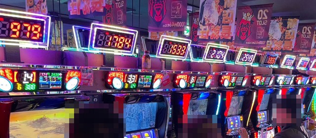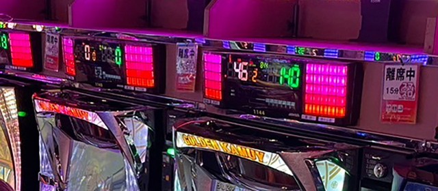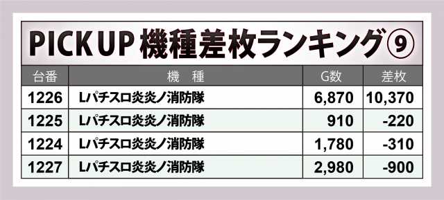 見逃せないのはプラス5桁の台を輩出した2機種。『スマスロ北斗の拳』では+10,400枚超、『Lパチスロ炎炎ノ消防隊』では+10,400枚弱と、大台を記録したのが2台。また前者では他にも+5,000枚超が2台と、シマ全体で盛り上がりを迎えていた。