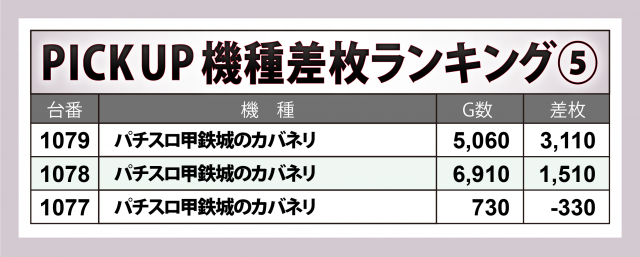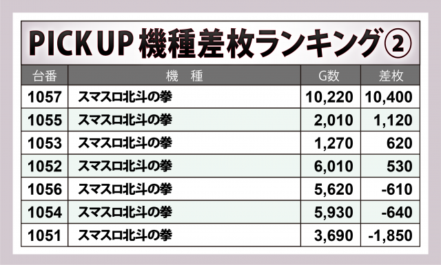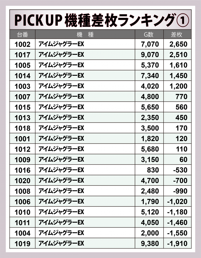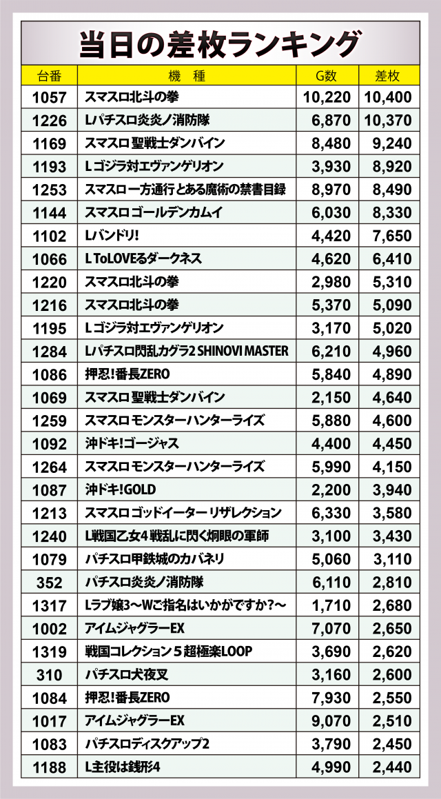 ※差枚数順に掲載しています。