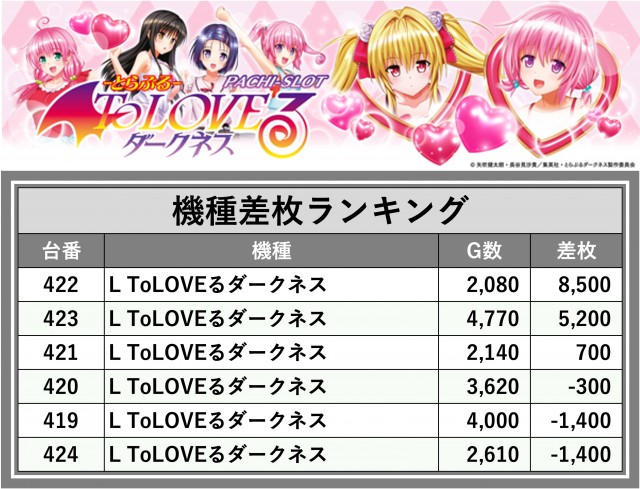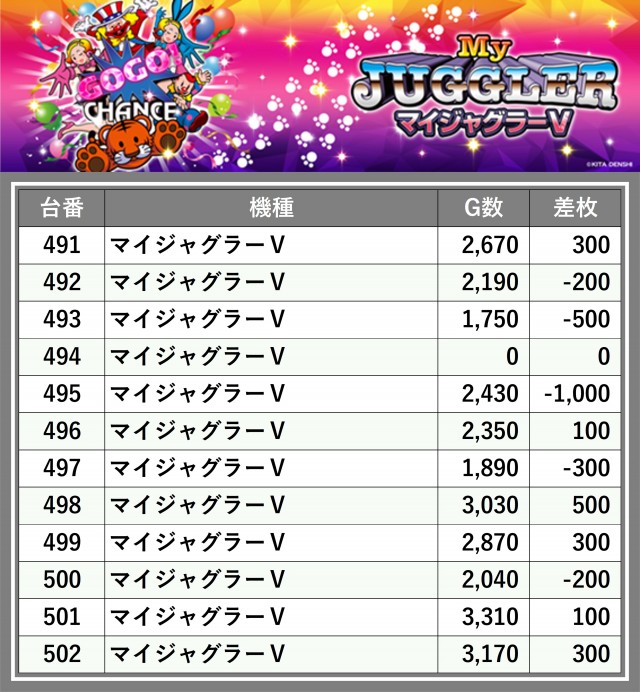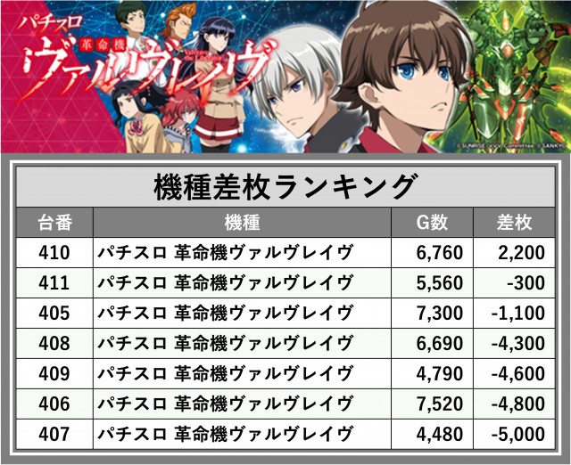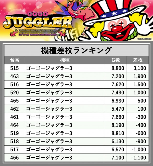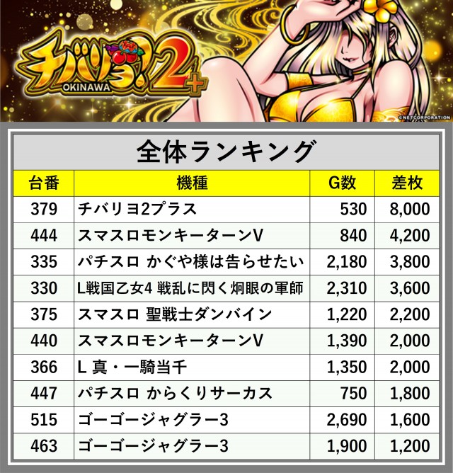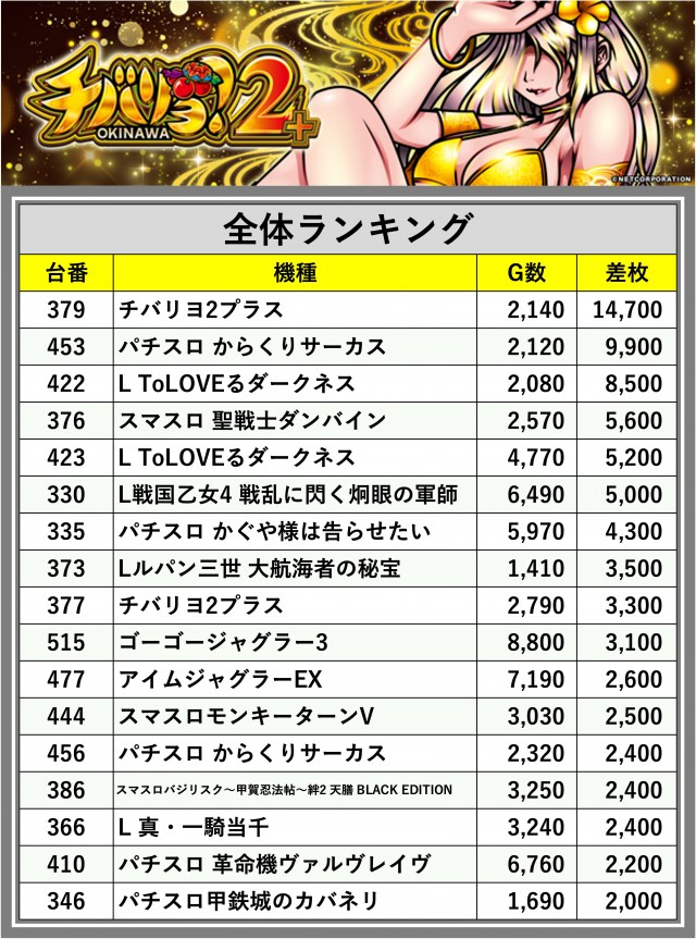 ※差枚数順に掲載しています