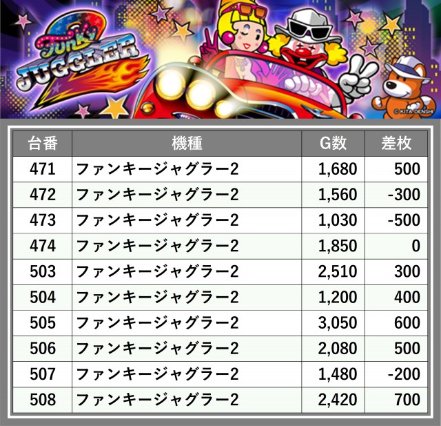 ※台番順に掲載しています