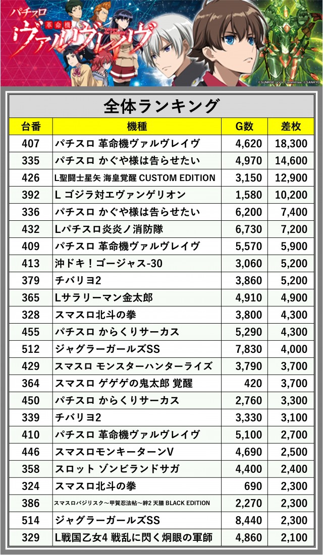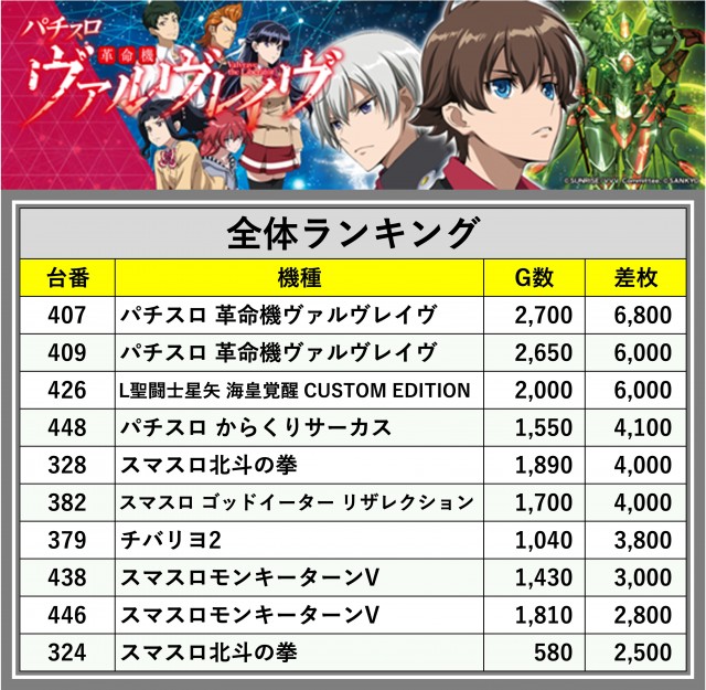 厳選された取材対象機種をはじめ、その他スロット全体から好記録が飛び出した!プレイヤーが楽しんだ1日を下記データにて振り返ってみて欲しい。