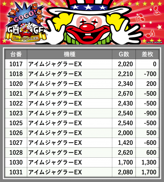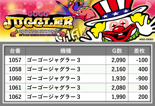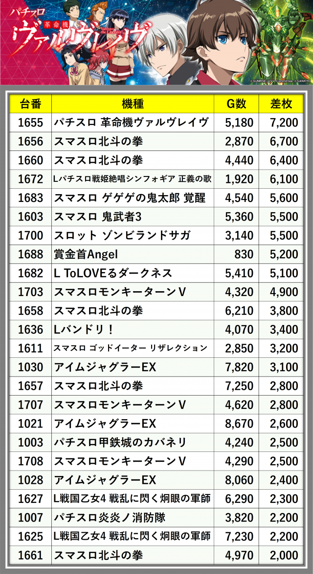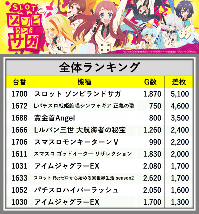 厳選された取材対象機種をはじめ、その他スロット全体から好記録が飛び出した!プレイヤーが楽しんだ1日を下記データにて振り返ってみて欲しい。