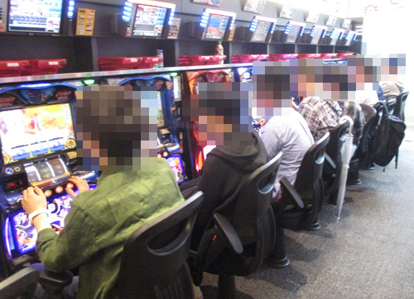 開店直後のパチスロでは、「バジリスク~甲賀忍法帖~絆」がすぐさま満席。