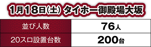 1月18日、大一番に挑んだホールは、「タイホー御殿場大坂」と「タイホー御殿場ぐみ沢」、「タイホー高丘」と「タイホー浜松三幸町」だ。