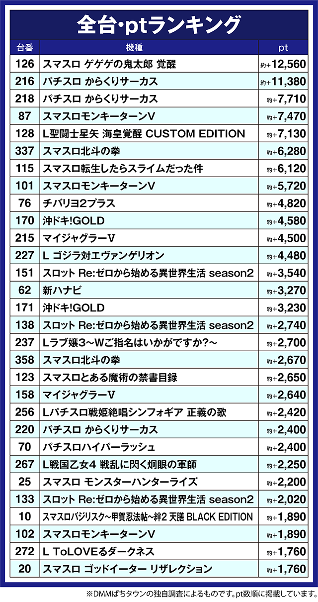 ※なお、本記事中のデータは全てDMMぱちタウンの独自調査によるものです