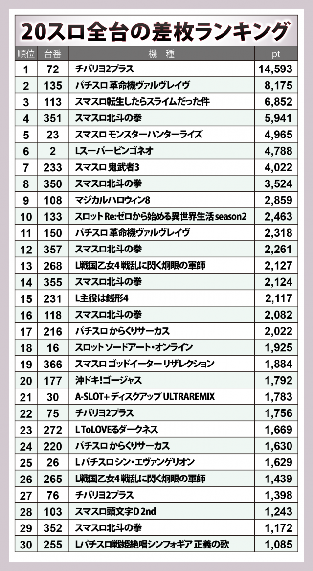 万枚突破台が生じた上にその下の好調台も複数と、順調なリスタートとなったことは喜ばしい。
