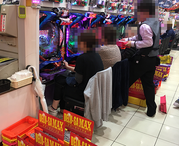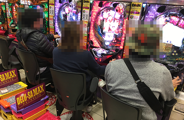 15時頃の4円パチンコでは、新台の「CR世界でいちばん強くなりたい!」と「CRぱちんこ GANTZ」が盛況。機種の特徴を活かしているようなプレイヤーが多く、満足度の高さもうかがえた。