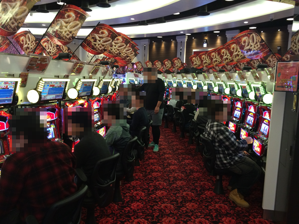 5円パチスロも大勢のプレイヤーで賑わっており、ボーナスタイプからAT・ART機まで、ラインナップの豊富な機種がじっくりと楽しまれていた。