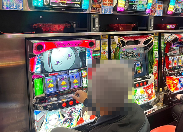 「パチスロ交響詩篇エウレカセブン HI-EVOLUTION ZERO TYPE-ART」にも笑みを浮かべている姿があり、取材時は1箱以上の持ち玉を使って遊技をおこなっていた。