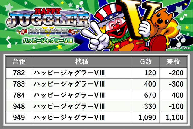 厳選された取材対象機種をはじめ、その他スロット全体から好記録が飛び出した!プレイヤーが楽しんだ1日を下記データにて振り返ってみて欲しい。