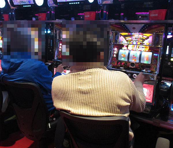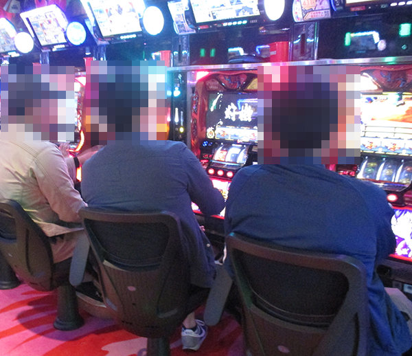 午後の20円パチスロにおいて、もっとも目立っていたのが「バジリスク~甲賀忍法帖~絆」。理想的ともいえる展開で遊技を楽しむプレイヤーの表情はとても明るかった。