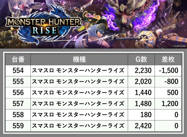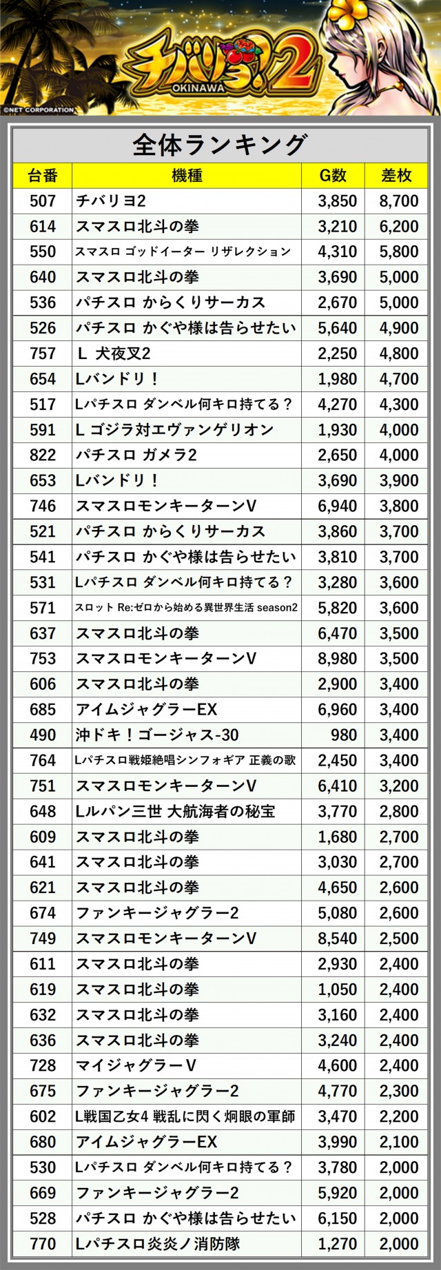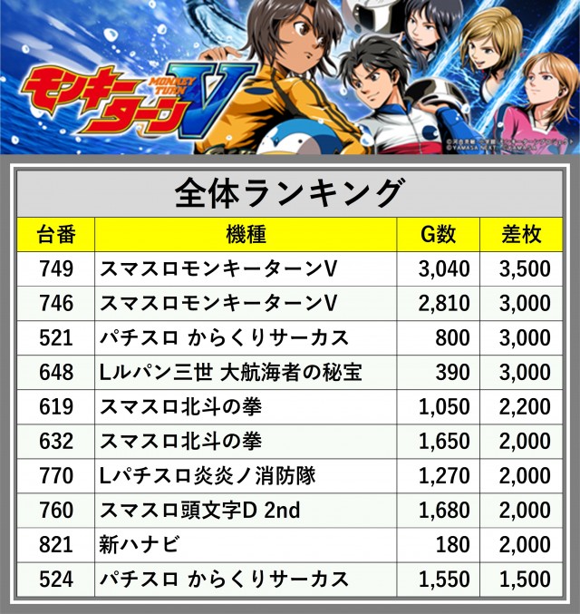 厳選された取材対象機種をはじめ、その他スロット全体から好記録が飛び出した!プレイヤーが楽しんだ1日を下記データにて振り返ってみて欲しい。