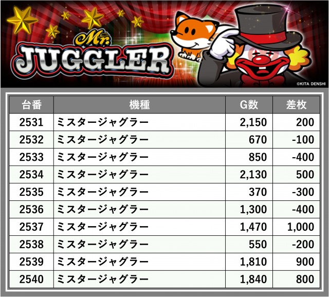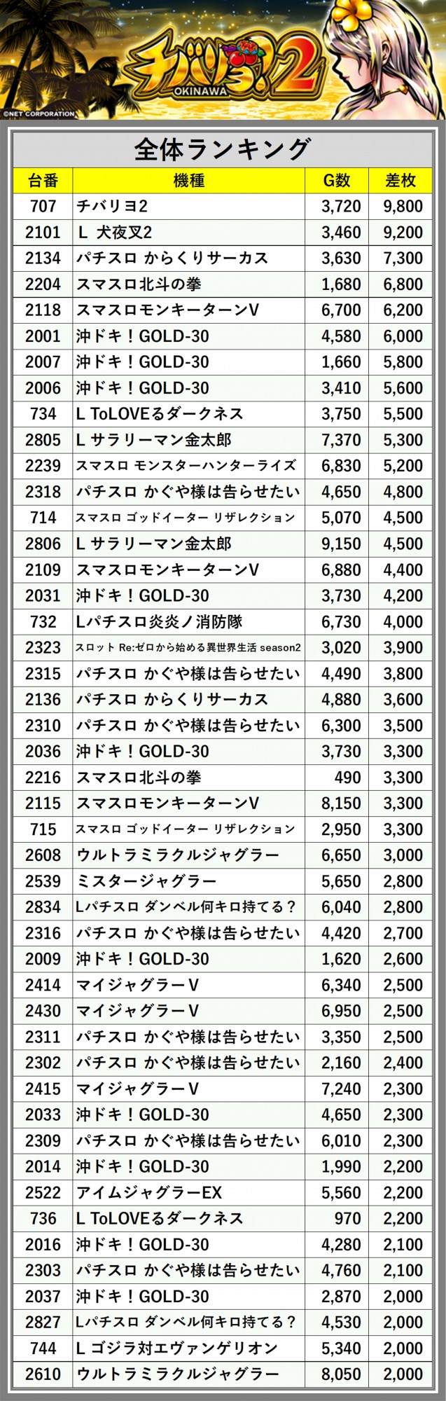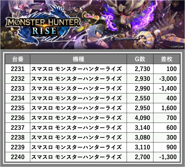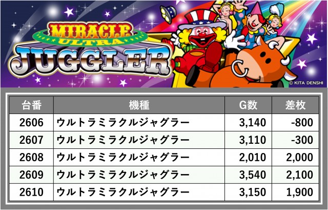 厳選された取材対象機種をはじめ、その他スロット全体から好記録が飛び出した!プレイヤーが楽しんだ1日を下記データにて振り返ってみて欲しい。