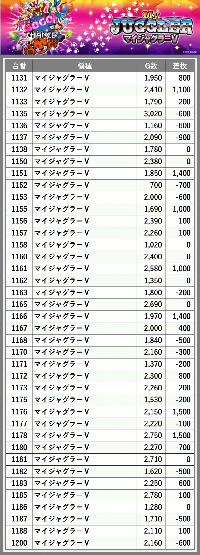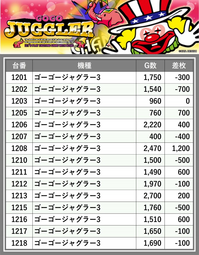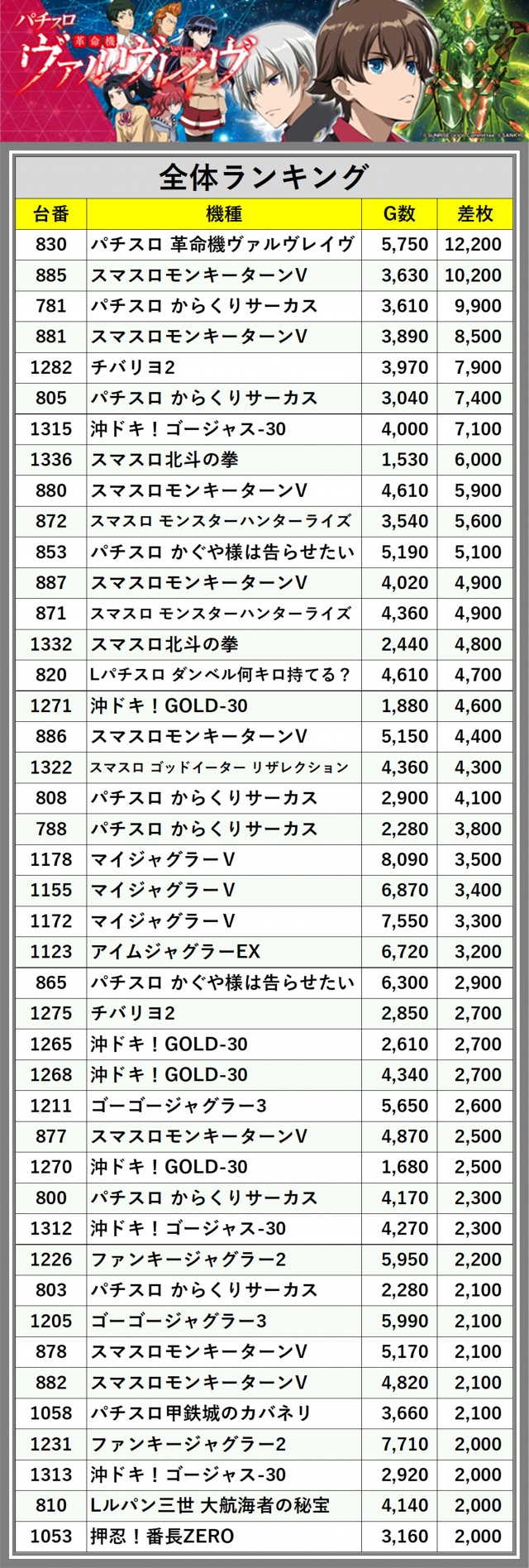 厳選された取材対象機種をはじめ、その他スロット全体から好記録が飛び出した!プレイヤーが楽しんだ1日を下記データにて振り返ってみて欲しい。