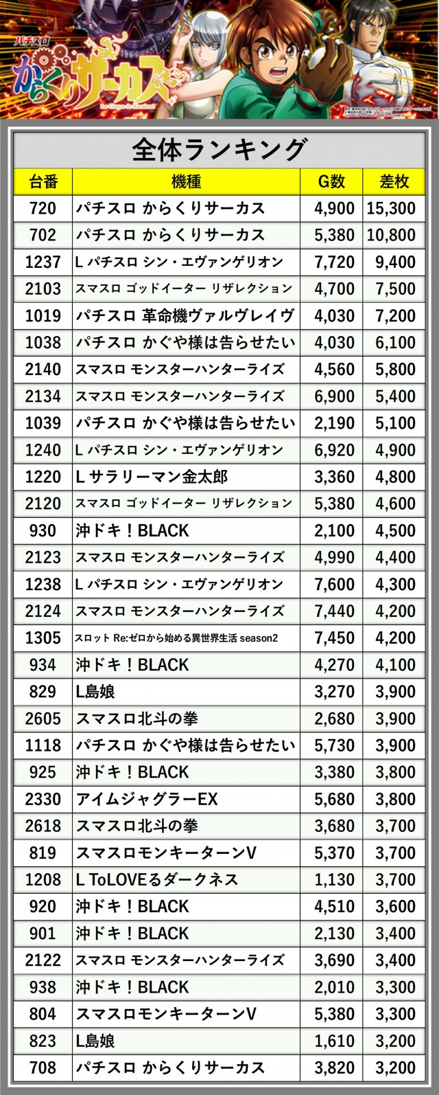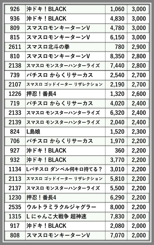 厳選された取材対象機種をはじめ、その他スロット全体から好記録が飛び出した!プレイヤーが楽しんだ1日を下記データにて振り返ってみて欲しい。