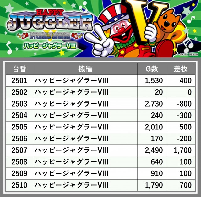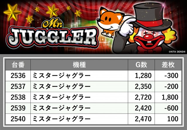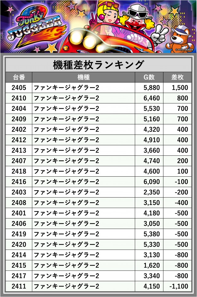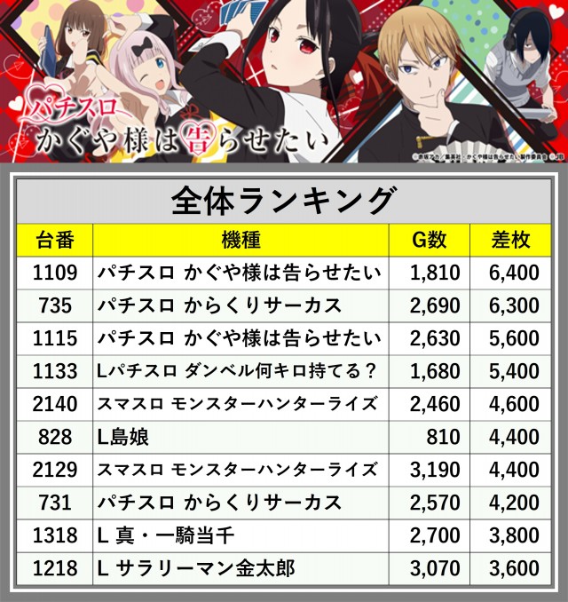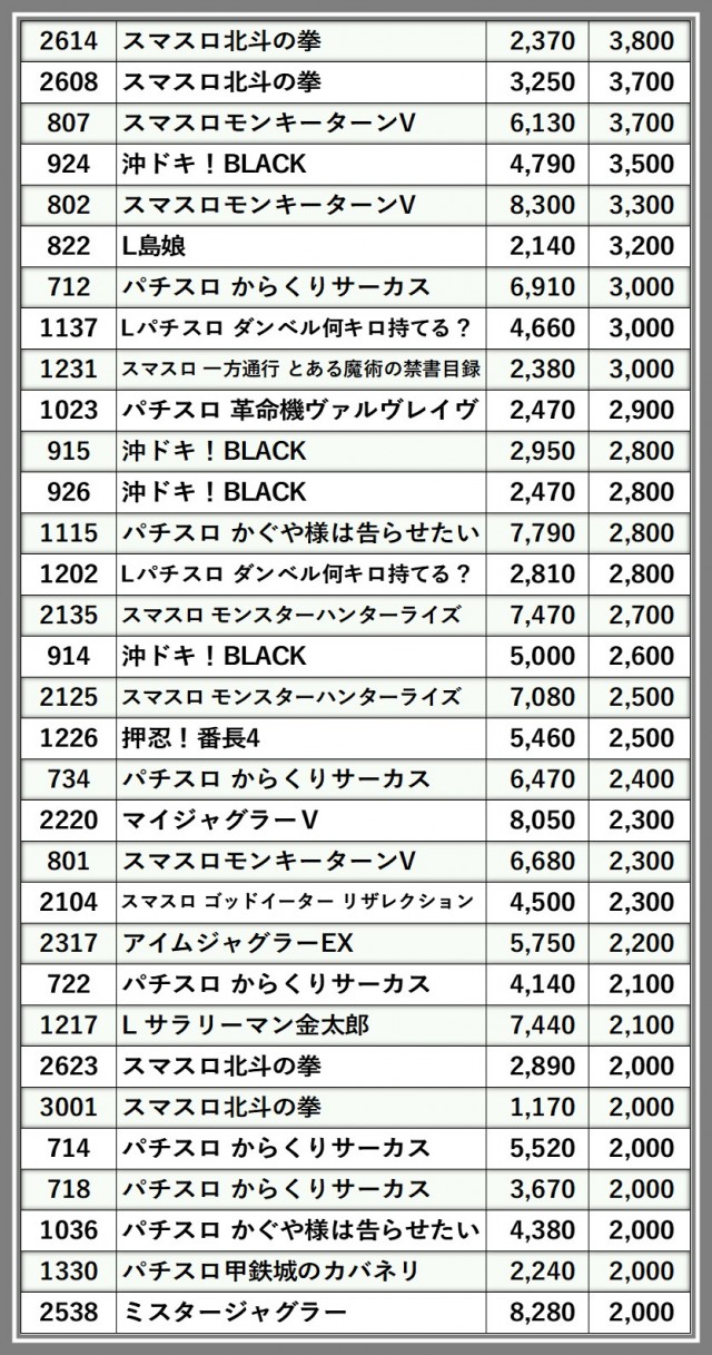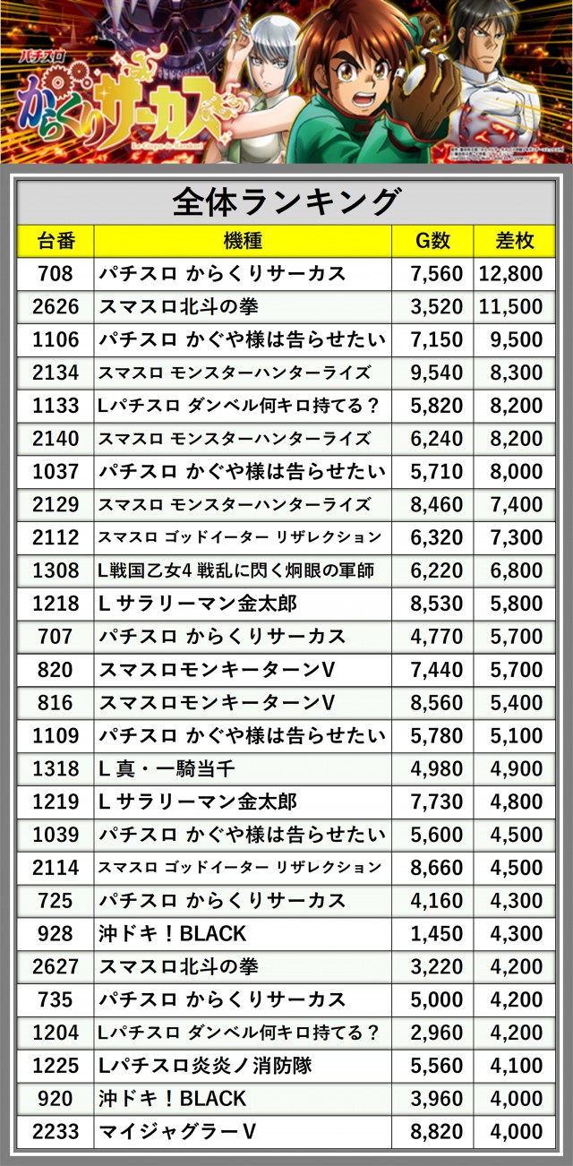 厳選された取材対象機種をはじめ、その他スロット全体から好記録が飛び出した!プレイヤーが楽しんだ1日を下記データにて振り返ってみて欲しい。