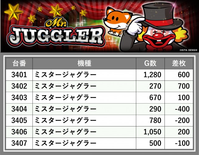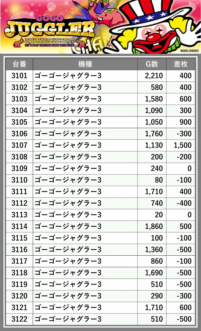厳選された取材対象機種をはじめ、その他スロット全体から好記録が飛び出した!プレイヤーが楽しんだ1日を下記データにて振り返ってみて欲しい。