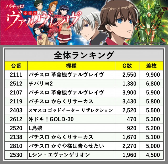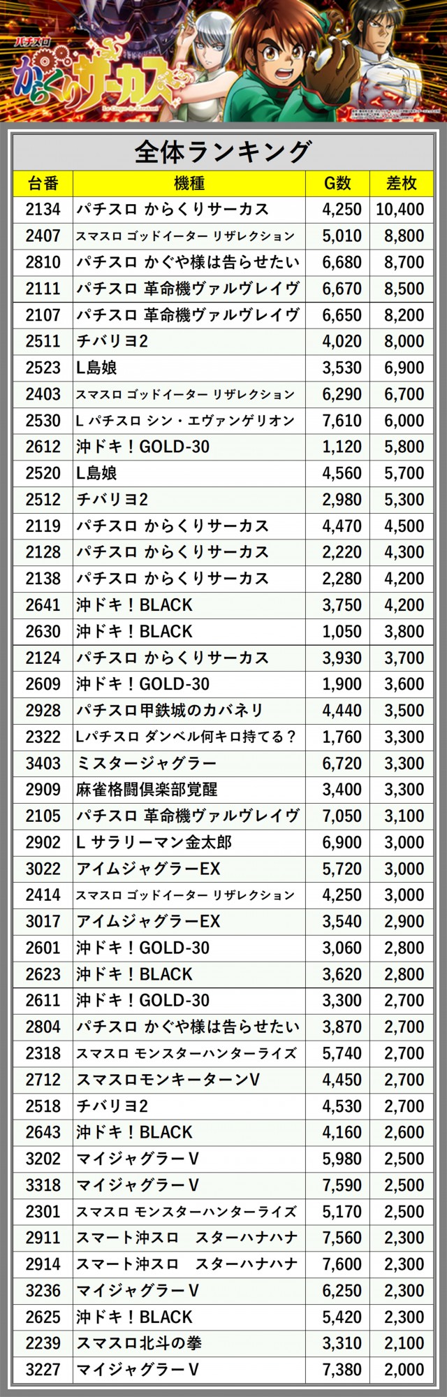厳選された取材対象機種をはじめ、その他スロット全体から好記録が飛び出した!プレイヤーが楽しんだ1日を下記データにて振り返ってみて欲しい。