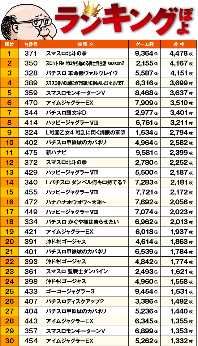 トータル差枚ランキング…ぽよ!