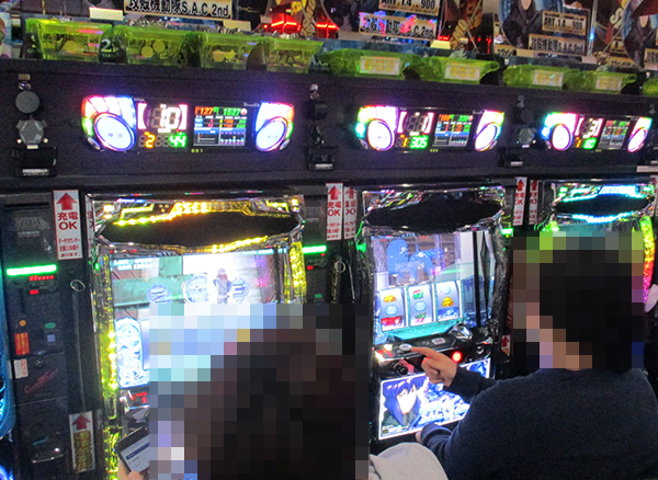 15時頃のパチスロでは、「パチスロ攻殻機動隊S.A.C. 2nd GIG」や「アナザーゴッドハーデス」など、さまざまな場所で華やかなシーンをみることができた。