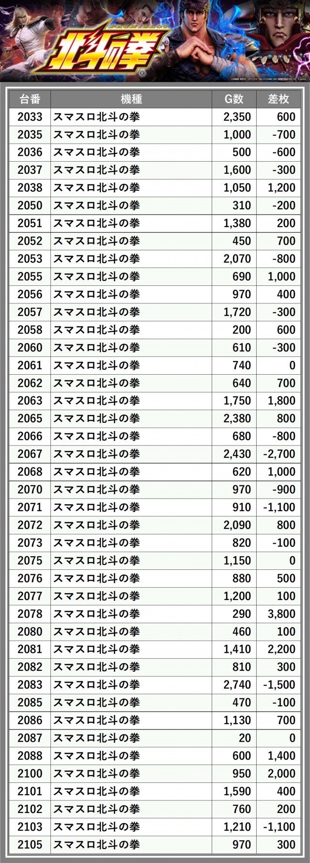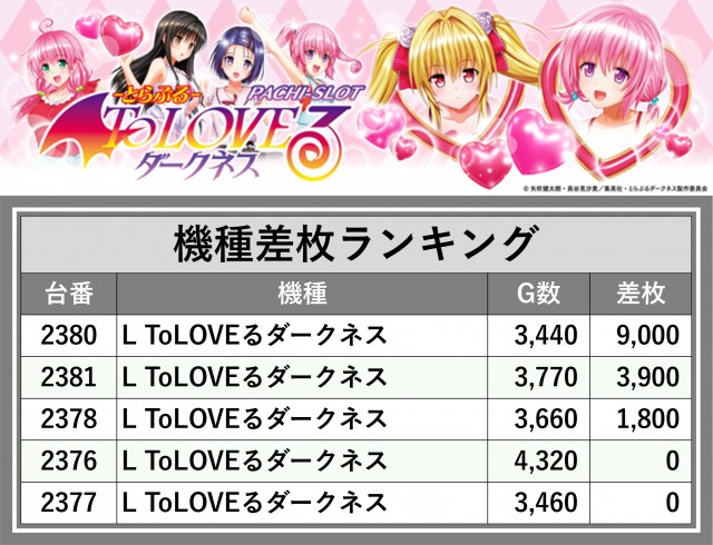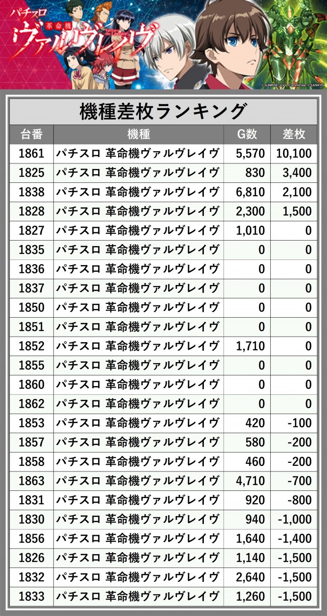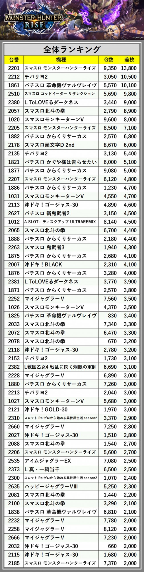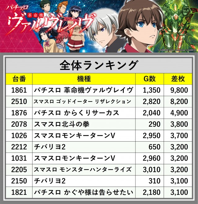 ※差枚数順に掲載しています