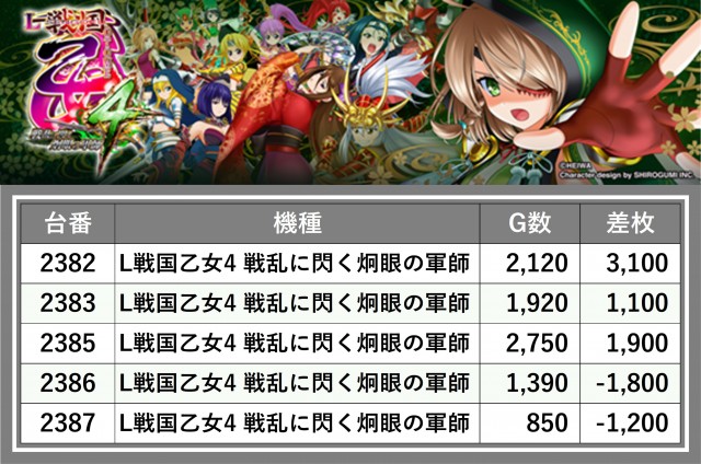 厳選された取材対象機種をはじめ、その他スロット全体から好記録が飛び出した!プレイヤーが楽しんだ1日を下記データにて振り返ってみて欲しい。