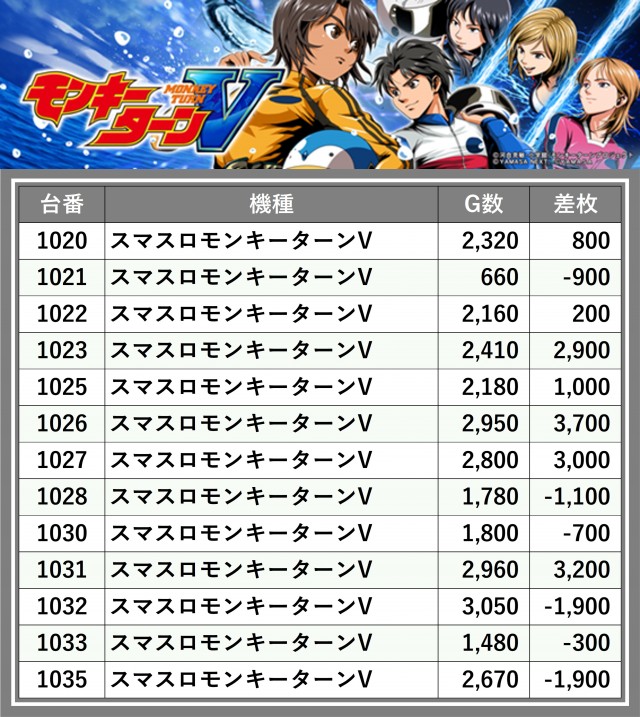 ※台番順に掲載しています