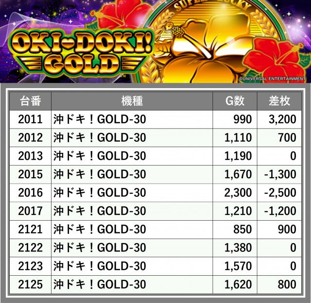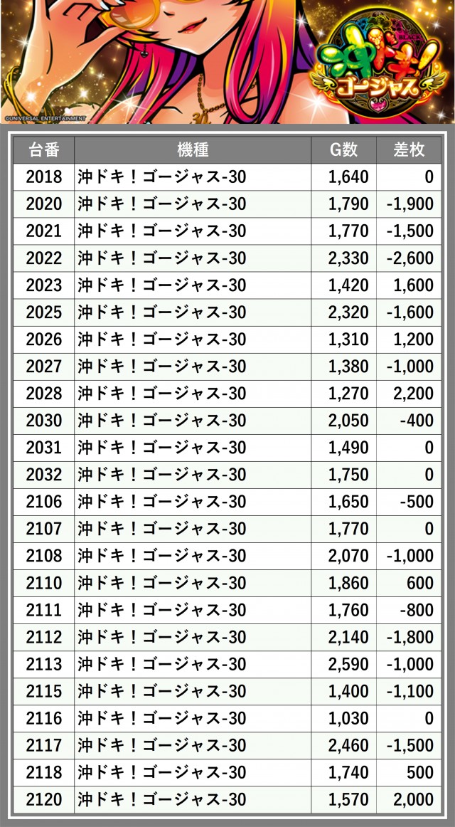 厳選された取材対象機種をはじめ、その他スロット全体から好記録が飛び出した!プレイヤーが楽しんだ1日を下記データにて振り返ってみて欲しい。