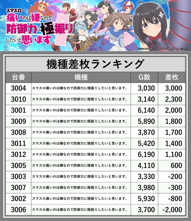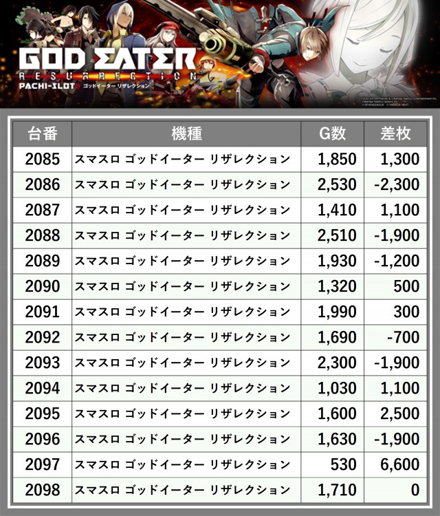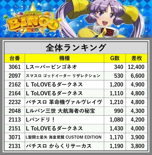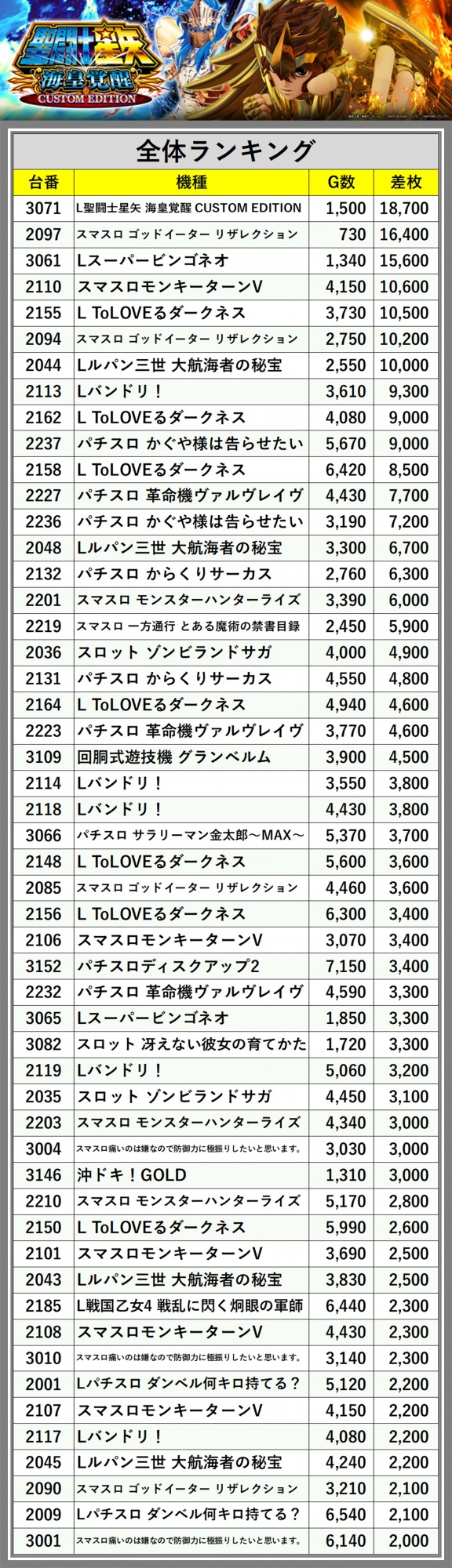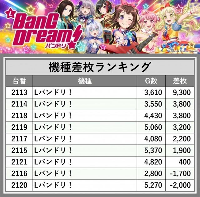 ※差枚数順に掲載しています