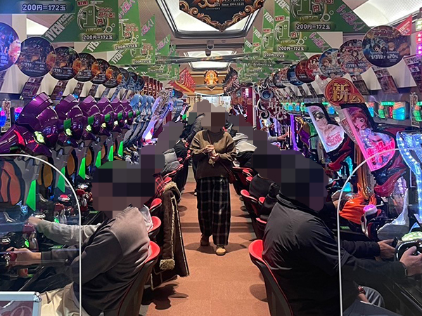 16時半ごろの200円/172玉パチンコを見ると「PAスーパー海物語 IN 沖縄5 with アイマリン」といった甘海シリーズが盛況の様子。華麗なパフォーマンスを披露するプレイヤーを多数目撃している。
