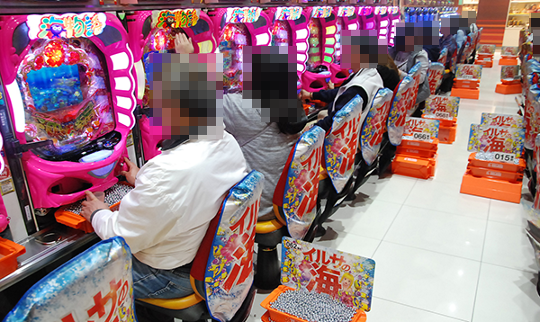 定番機種の海物語シリーズの支持も厚く、シマ内の雰囲気は明るい。