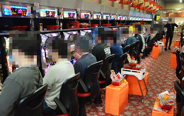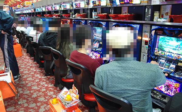 14時頃の4円パチンコでは、「ぱちんこCR北斗の拳7 転生」と「ぱちんこCR真・北斗無双」が盛況。華麗なパフォーマンスを披露するプレイヤーが目立ち、盛り上がりもひときわ大きかった。