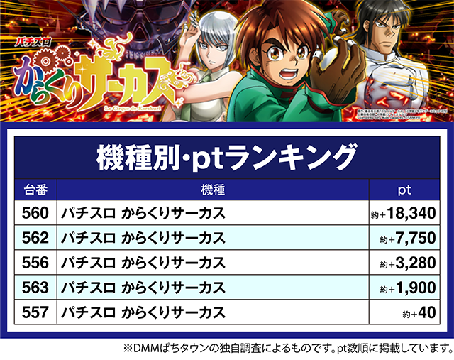 機種全体で約7割がプラスとなり、562番台も約+7,700ptオーバー。