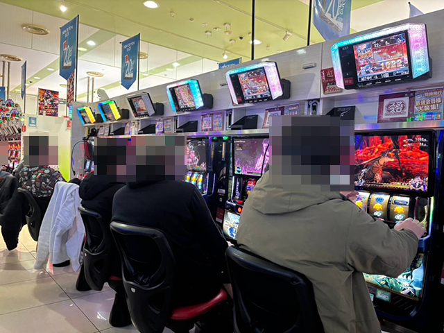 パチンコをみてみると、「P魔法少女まどか☆マギカ3」と「P真・一騎当千~桃園の誓い~199LTver.」で、プレイヤーたちが楽しそうにハンドルを握っていた。