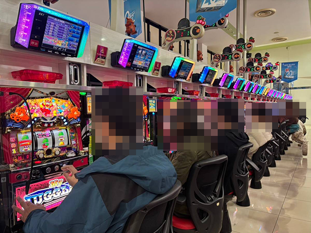 「マイジャグラーⅤ」も支持されており、明るい表情で遊技をおこなっている姿が多い。