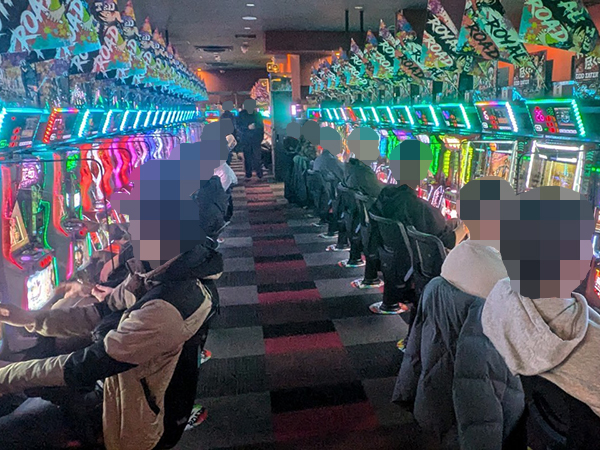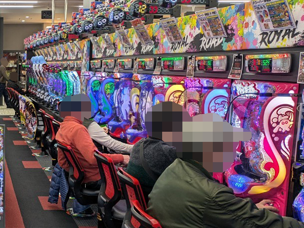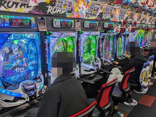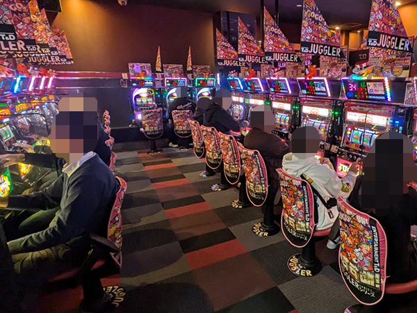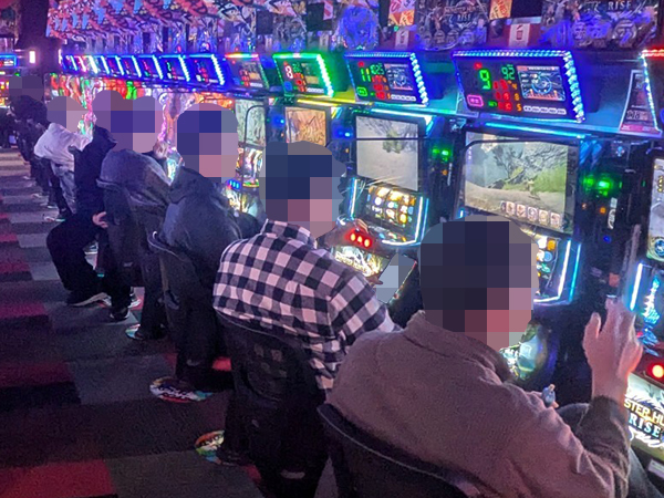 取材時は既に多くのプレイヤーが集結し、パチンコ・パチスロを問わずにぎやかな状況となっていた。