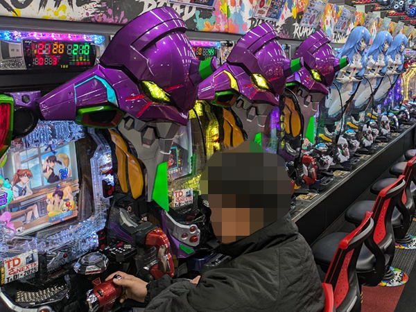 14時ごろの4円パチンコを見ると「e Re:ゼロから始める異世界生活 season2」や「新世紀エヴァンゲリオン〜未来への咆哮〜」が盛況の様子。華麗なパフォーマンスを披露するプレイヤーを多数目撃している。