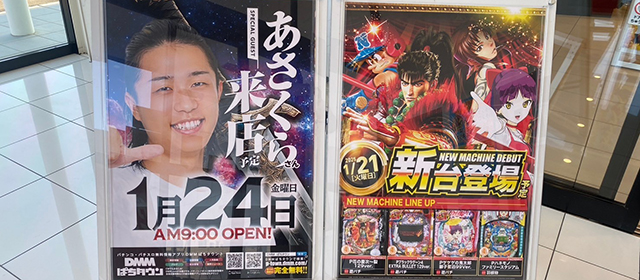 今までコンスタントに「英雄のリアル」が実施されてきた「エヌワン小名浜店」。1月24日にも本年2回目が実施されたところだ。この日は朝から199人ものファンが集まり、スペシャルサポーターのあさくらの来店もあって、盛り上がりは最高潮。開店と同時に店内は、一心不乱にレバーを叩くファンで埋めつくされていた。