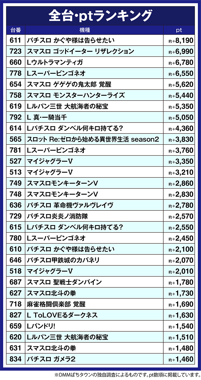 ※なお、本記事中のデータは全てDMMぱちタウンの独自調査によるものです