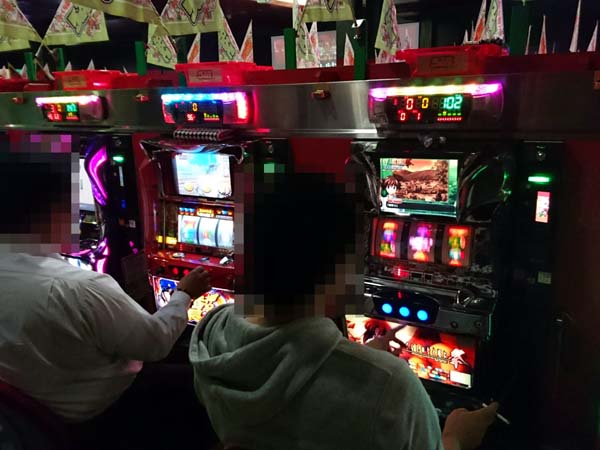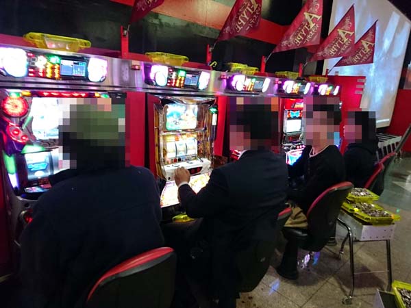 午後5時頃の店内には、仕事帰りのサラリーマンや若者スロッターなど、幅広い年代のプレイヤーでにぎわっていた。