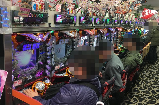 16時ごろの4円パチンコでは、「ぱちんこCR真・北斗無双」や「CR牙狼魔戒ノ花〜BEAST OF GOLD」などの定番機種を中心に盛況。