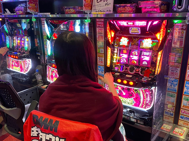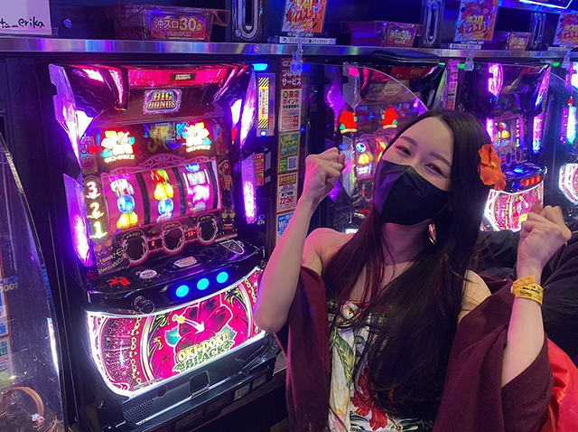 パチンコは最新機種の活気が大きく、「eぱちんこ押忍!番長 漢の頂」に華麗なパフォーマンスを披露する姿アリ!