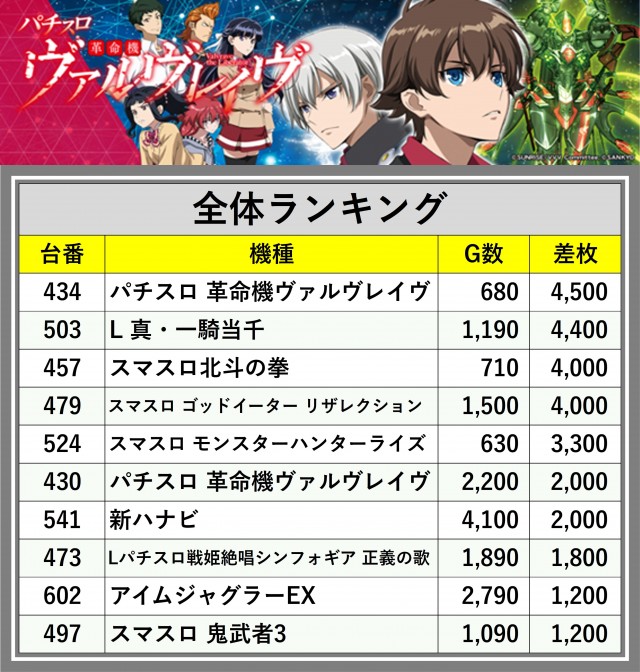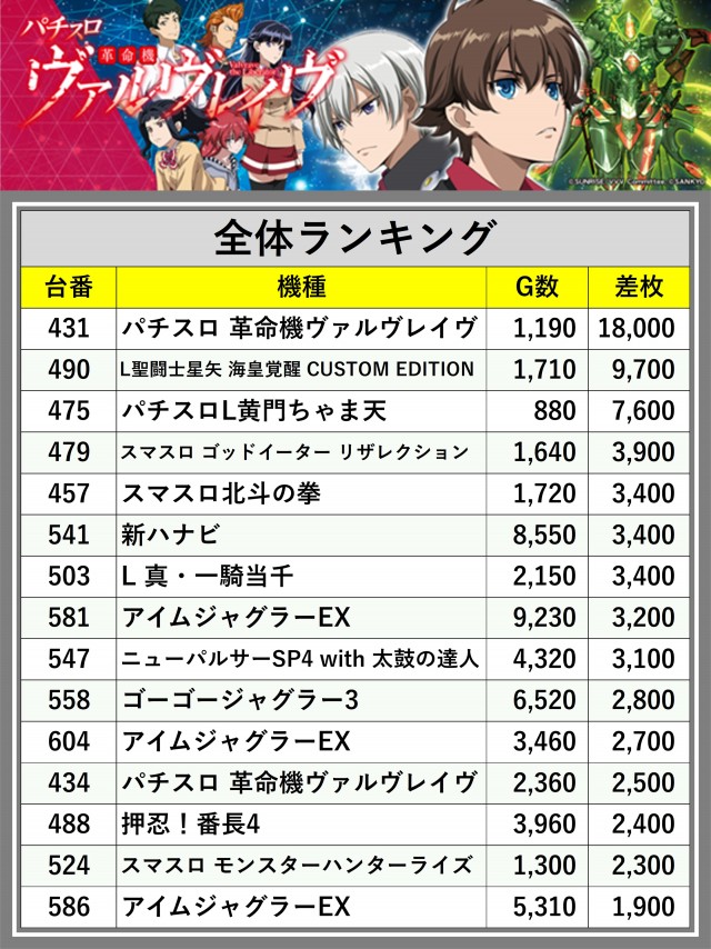 厳選された取材対象機種をはじめ、その他スロット全体から好記録が飛び出した!プレイヤーが楽しんだ1日を下記データにて振り返ってみて欲しい。
